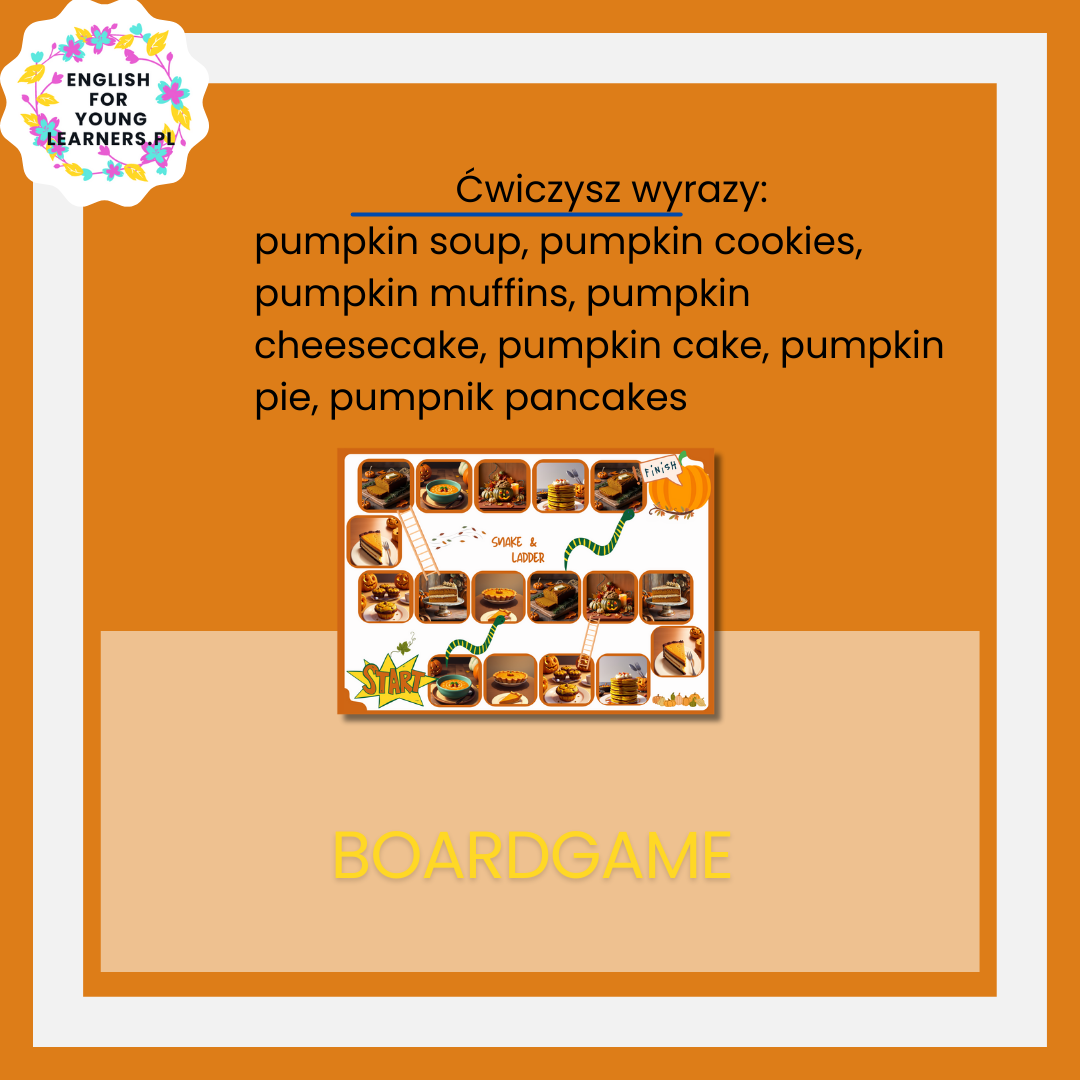 - słownictwa: (pumpkin) pie, (pumpkin) cake, (pumpkin) pancakes, (pumpkin) bread, (pumpkin) cookies, (pumpkin)soup, (pumpkin) muffins, (pumpkin) cheesecake